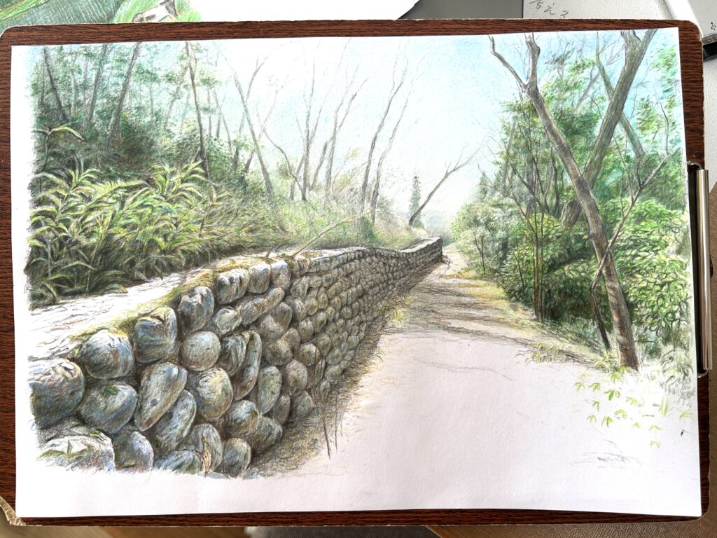 先に手前から描いてしまったから、空が後回しになったけど、遠くから描いた方がいいと思いました。