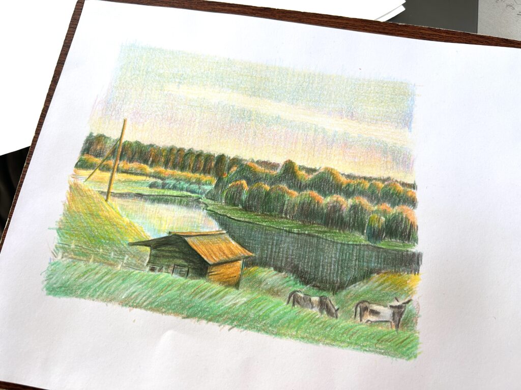 初めての色鉛筆だったので、色々試しながら挑戦してみました。